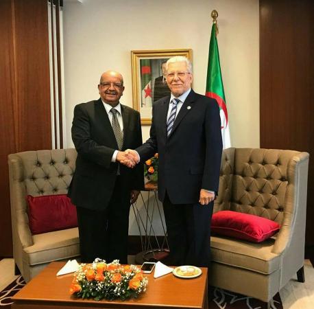 Une session de travail entre le ministre algérien des Affaires étrangères, Abdelkader Messahel, et le secrétaire général de l UMA, Dr. Taieb Baccouche